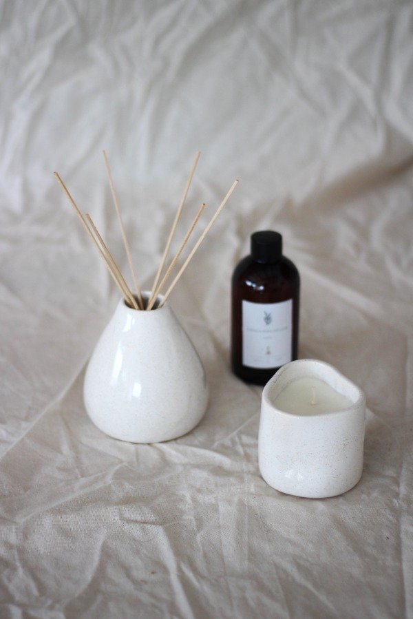El kit incluye 1 Difusor Lanín con esencia y varillas + 1 Vela amorfa con aroma a Magnolias